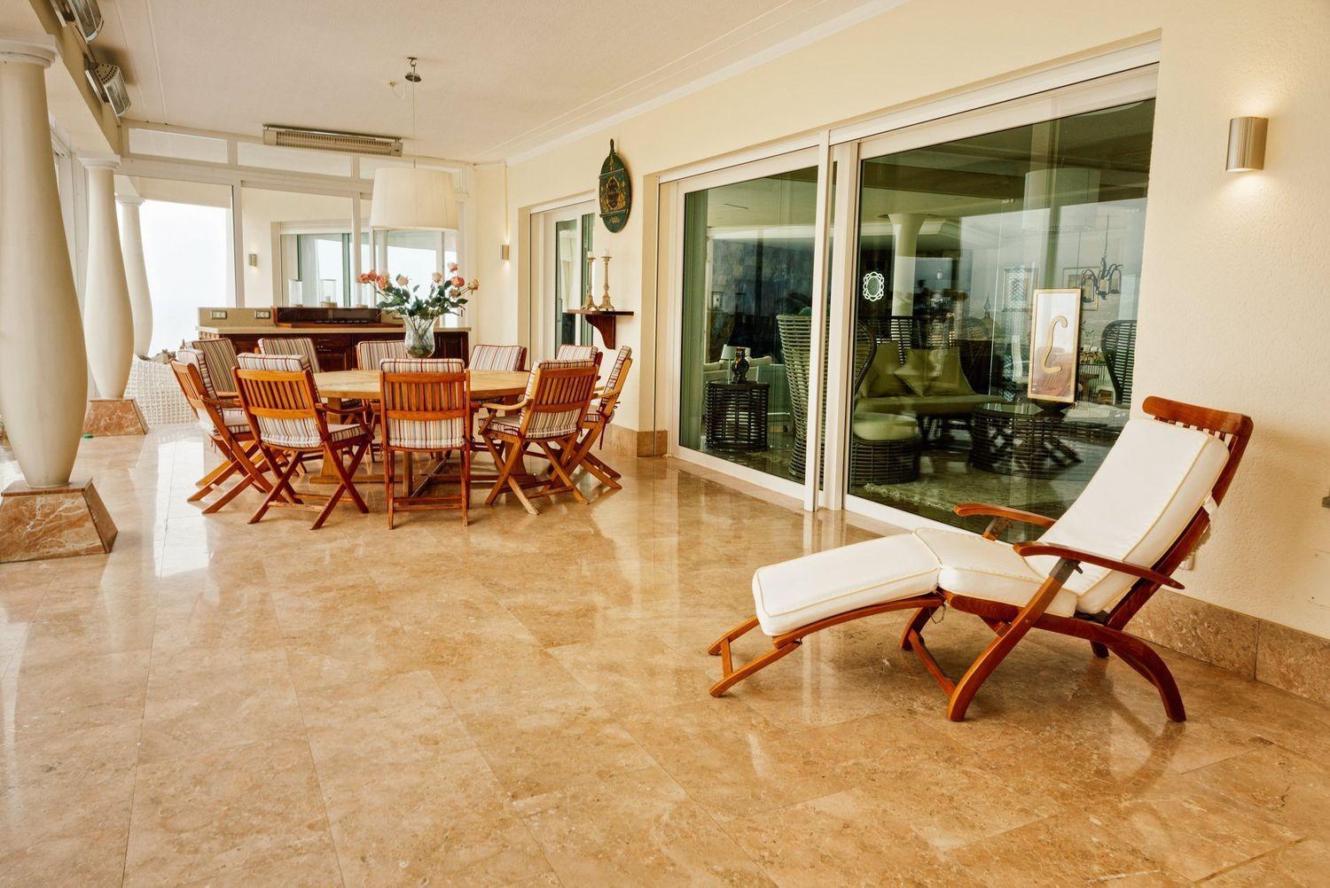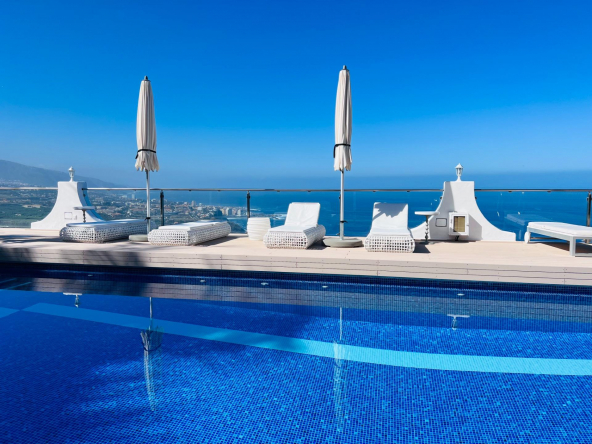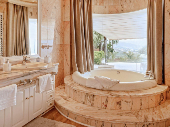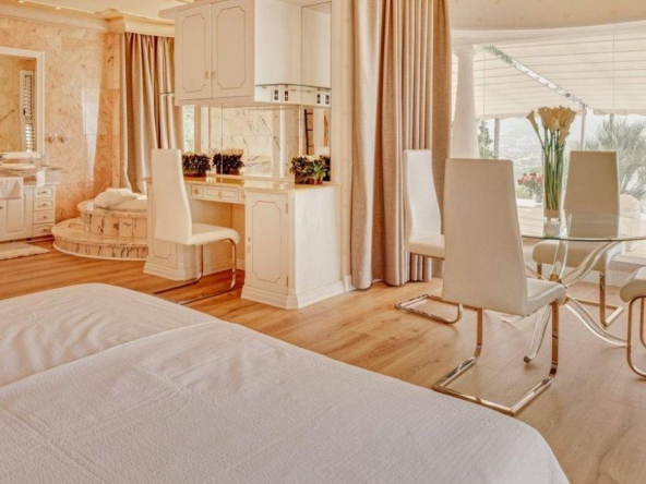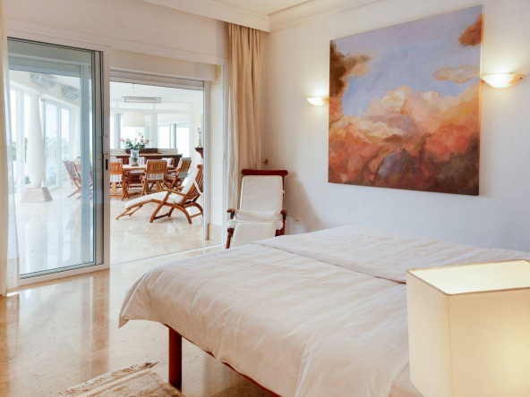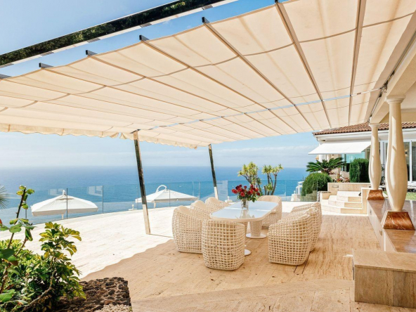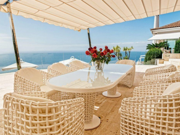 Von dem gesamten Grundstück, den Terrassen und dem Pool aus genießt man einen atemberaubenden Meerblick in erster Küstenlinie sowie alle Sonnenuntergänge.
