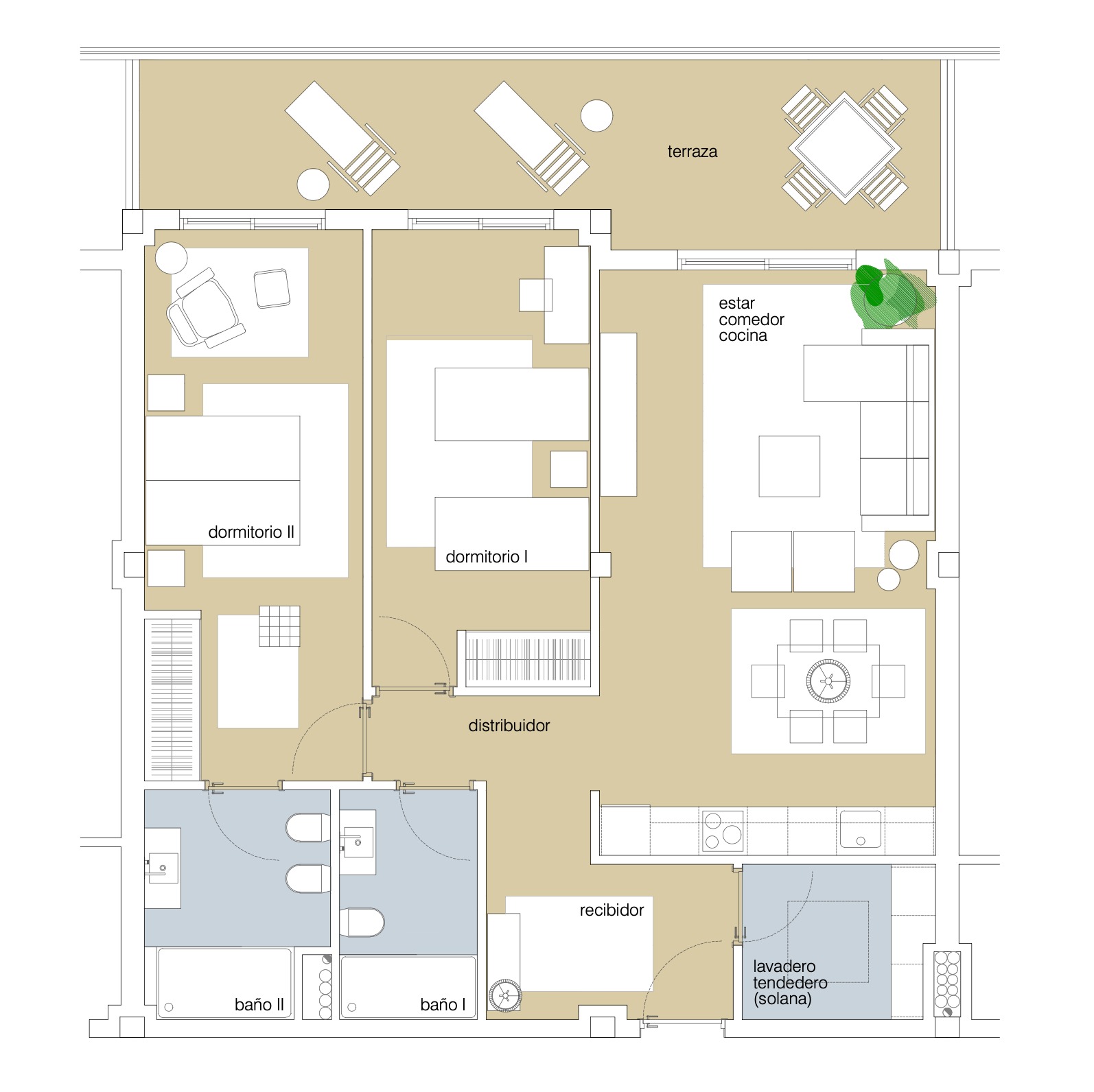 Das Penthouse verfügt über 2 Schlafzimmer und 2 Badezimmer, eines davon en-suite, ein geräumiges und helles Wohn-Esszimmer sowie eine hochwertig ausgestattete Küche. Auf der Terrasse können Sie sich bei den angenehmen Temperaturen der Region entspannen. Von der Wohnung aus haben Sie einen Blick auf den Montaña Roja und den Teide.