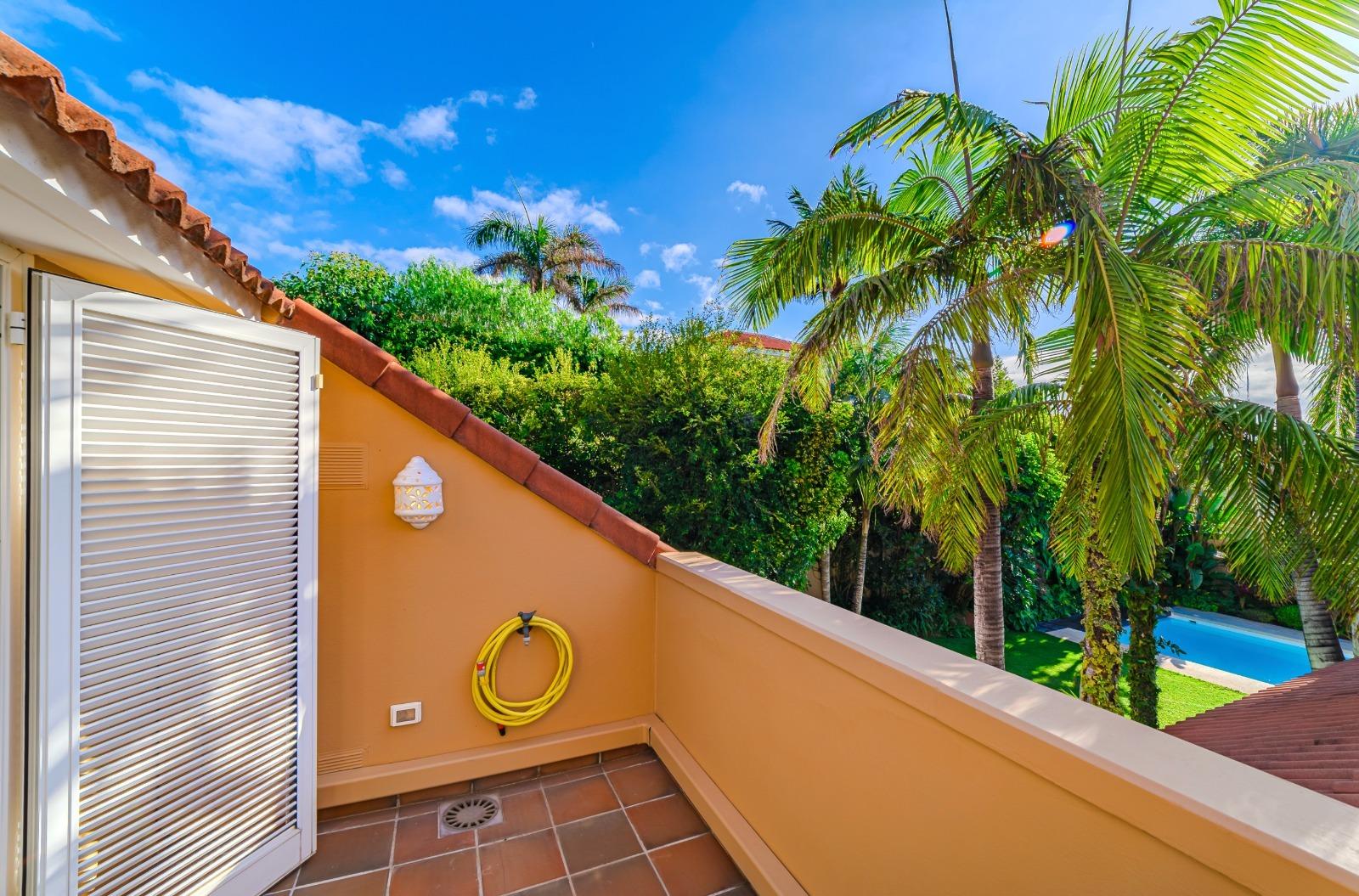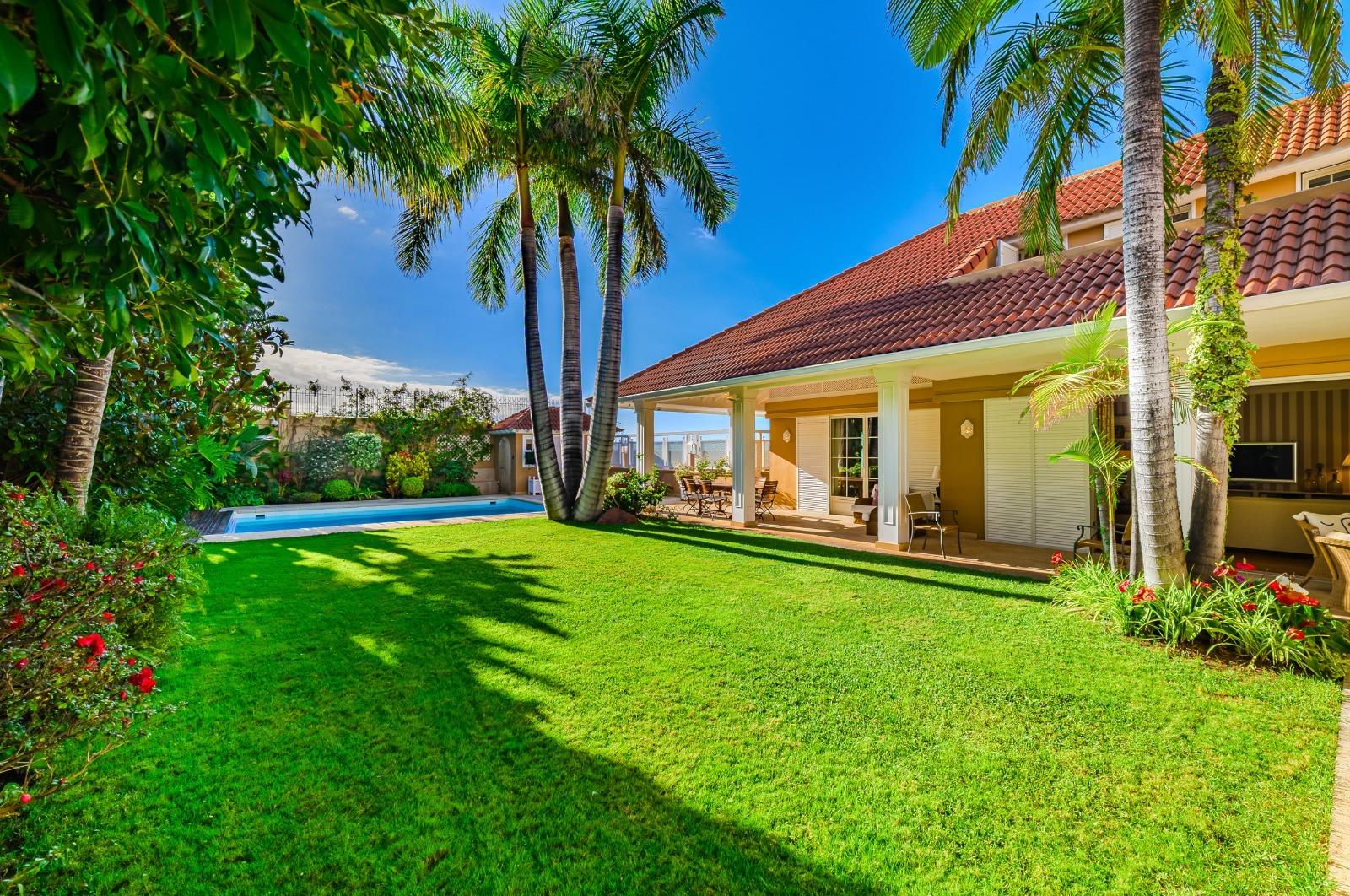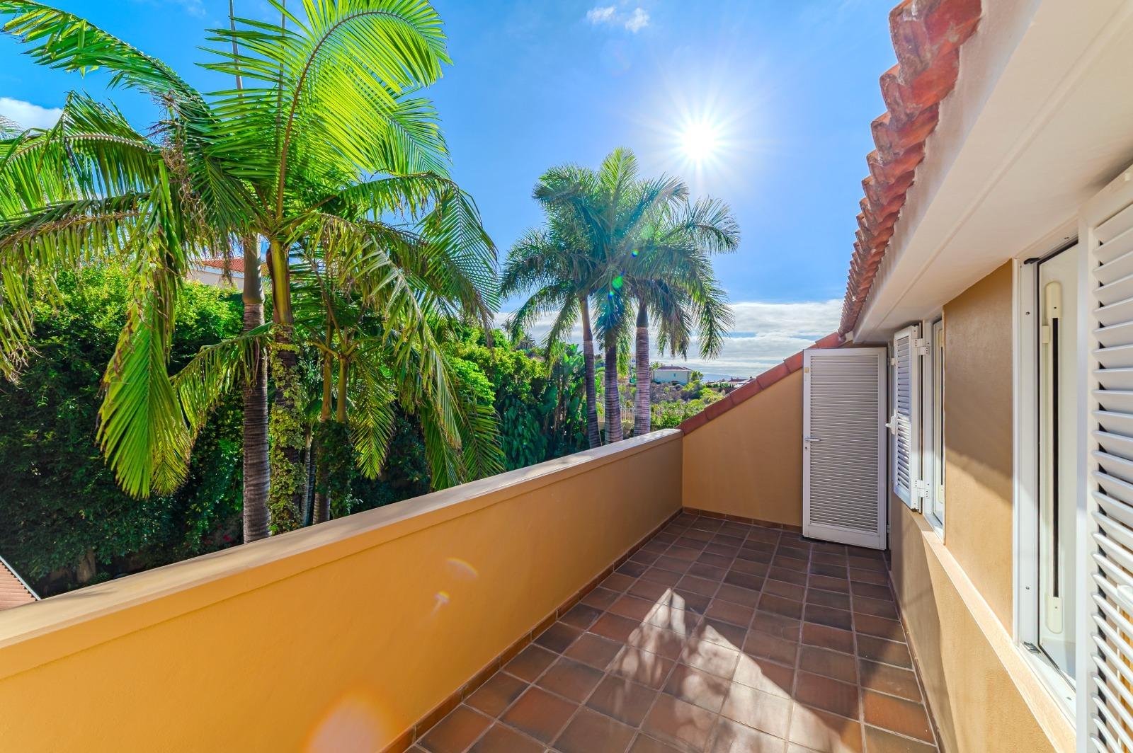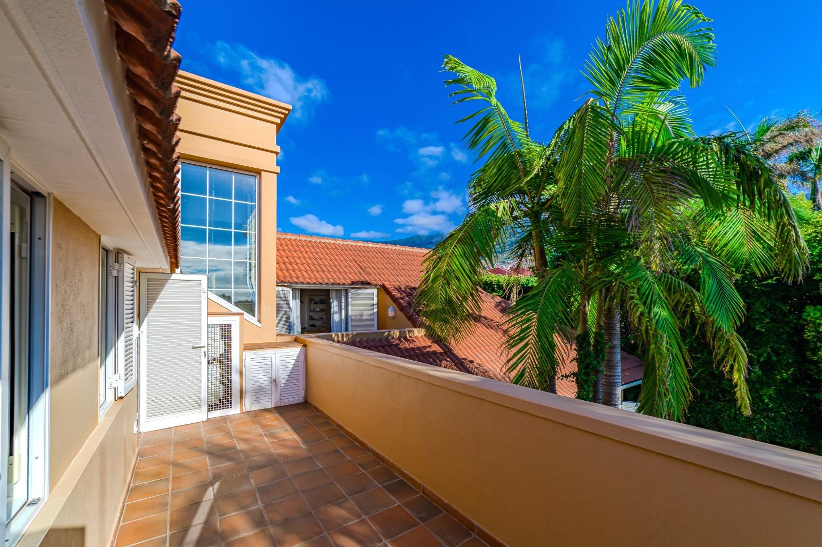 El exterior es un auténtico refugio de tranquilidad: un amplio jardín de 674 m², cuidadosamente diseñado con plantas y árboles, rodea la piscina y crea espacios ideales para el descanso y la recreación. La propiedad cuenta con terrazas en la primera planta y en la planta baja dispone de una veranda orientada al suroeste, desde donde se disfrutan vistas privilegiadas al majestuoso Teide. Además, existe la posibilidad de construir una terraza adicional con vistas al mar, ampliando las perspectivas panorámicas de la villa.