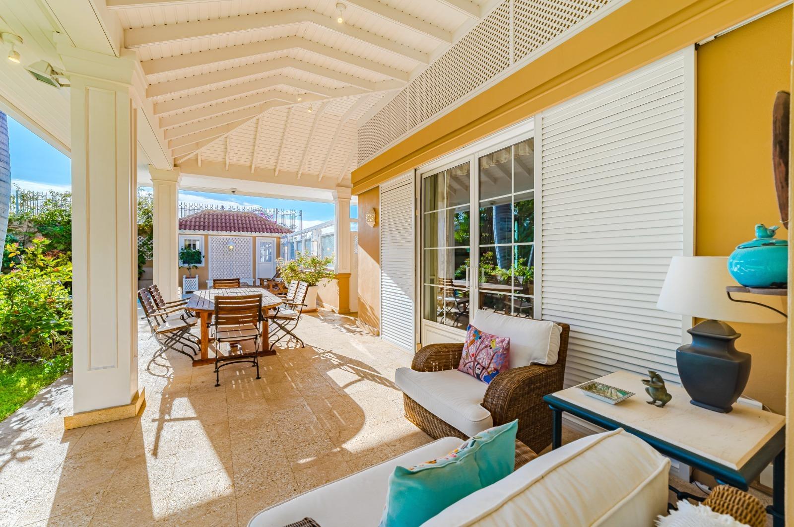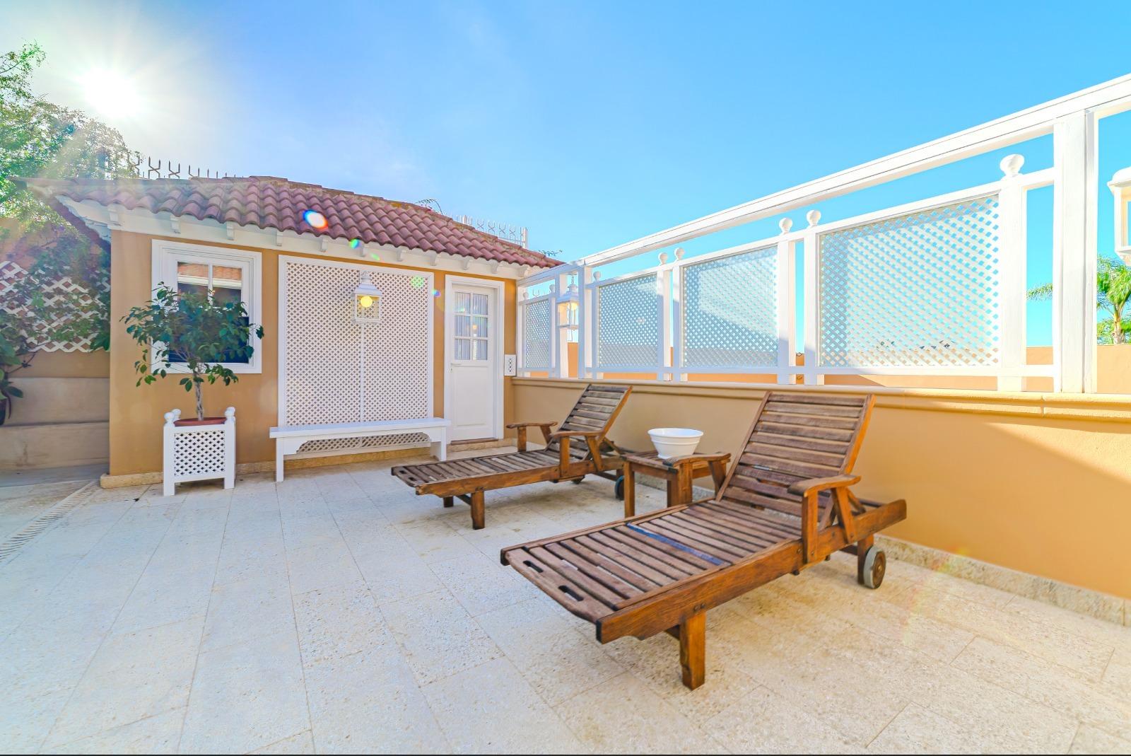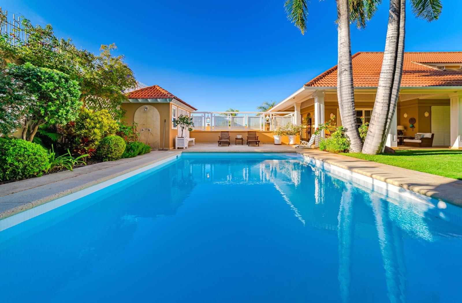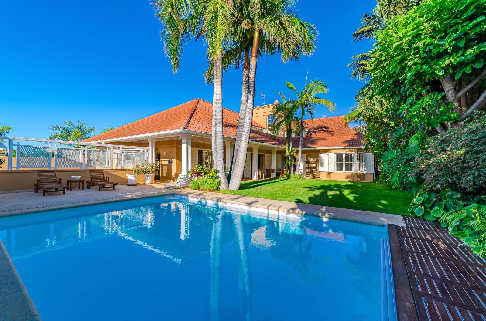 El exterior es un auténtico refugio de tranquilidad: un amplio jardín de 674 m², cuidadosamente diseñado con plantas y árboles, rodea la piscina y crea espacios ideales para el descanso y la recreación. La propiedad cuenta con terrazas en la primera planta y en la planta baja dispone de una veranda orientada al suroeste, desde donde se disfrutan vistas privilegiadas al majestuoso Teide. Además, existe la posibilidad de construir una terraza adicional con vistas al mar, ampliando las perspectivas panorámicas de la villa.