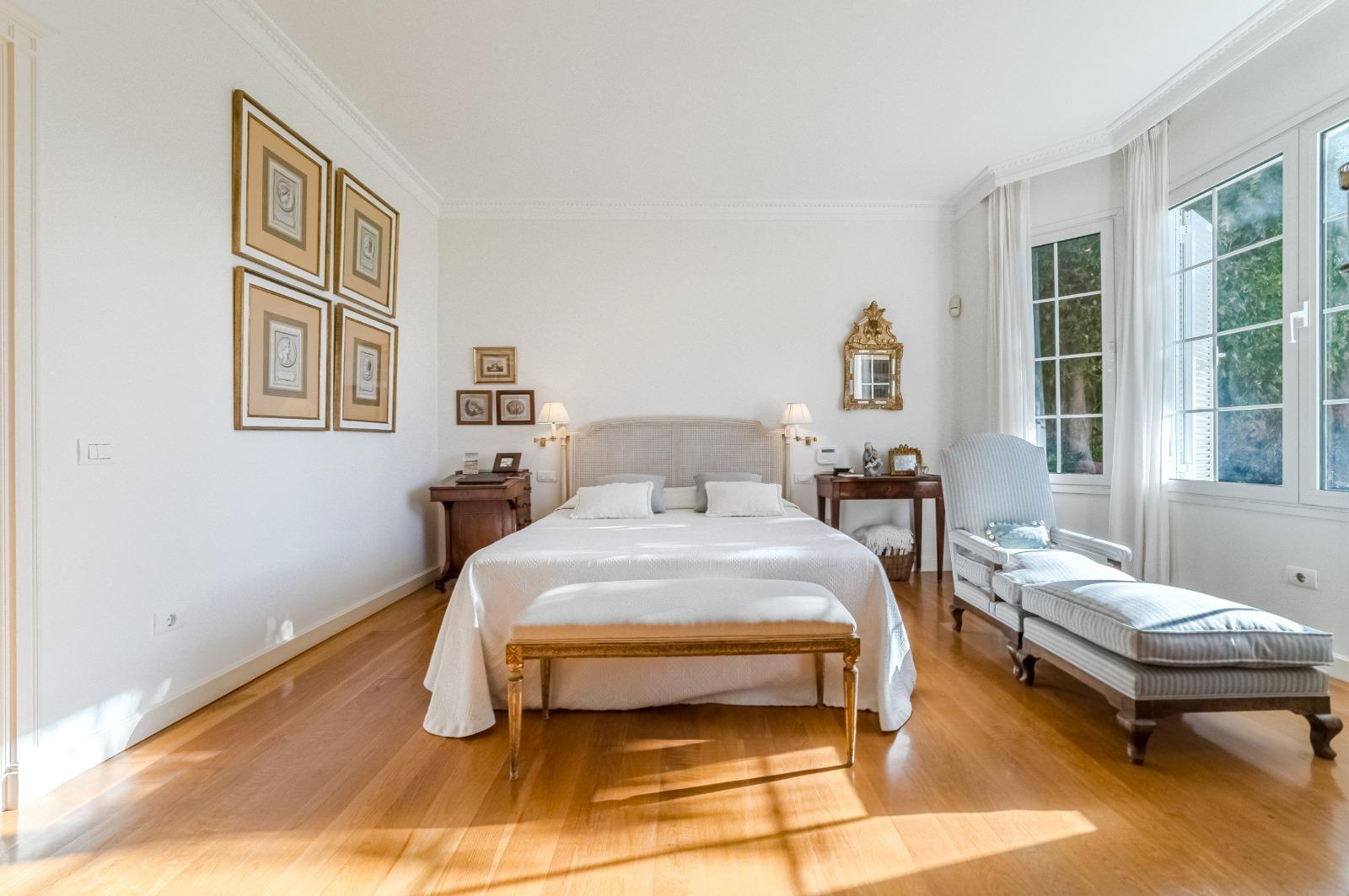 El interior transmite calidez y sofisticación, con suelos de roble, armarios empotrados y calefacción por suelo radiante que envuelve cada estancia en confort. La villa se organiza en dos plantas y un sótano que alberga un garaje con capacidad para 6 vehículos y un gimnasio privado, garantizando funcionalidad sin comprometer el estilo.