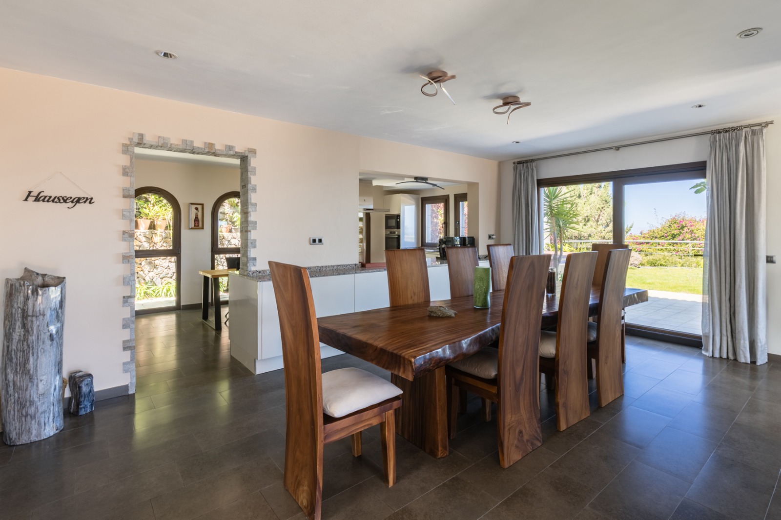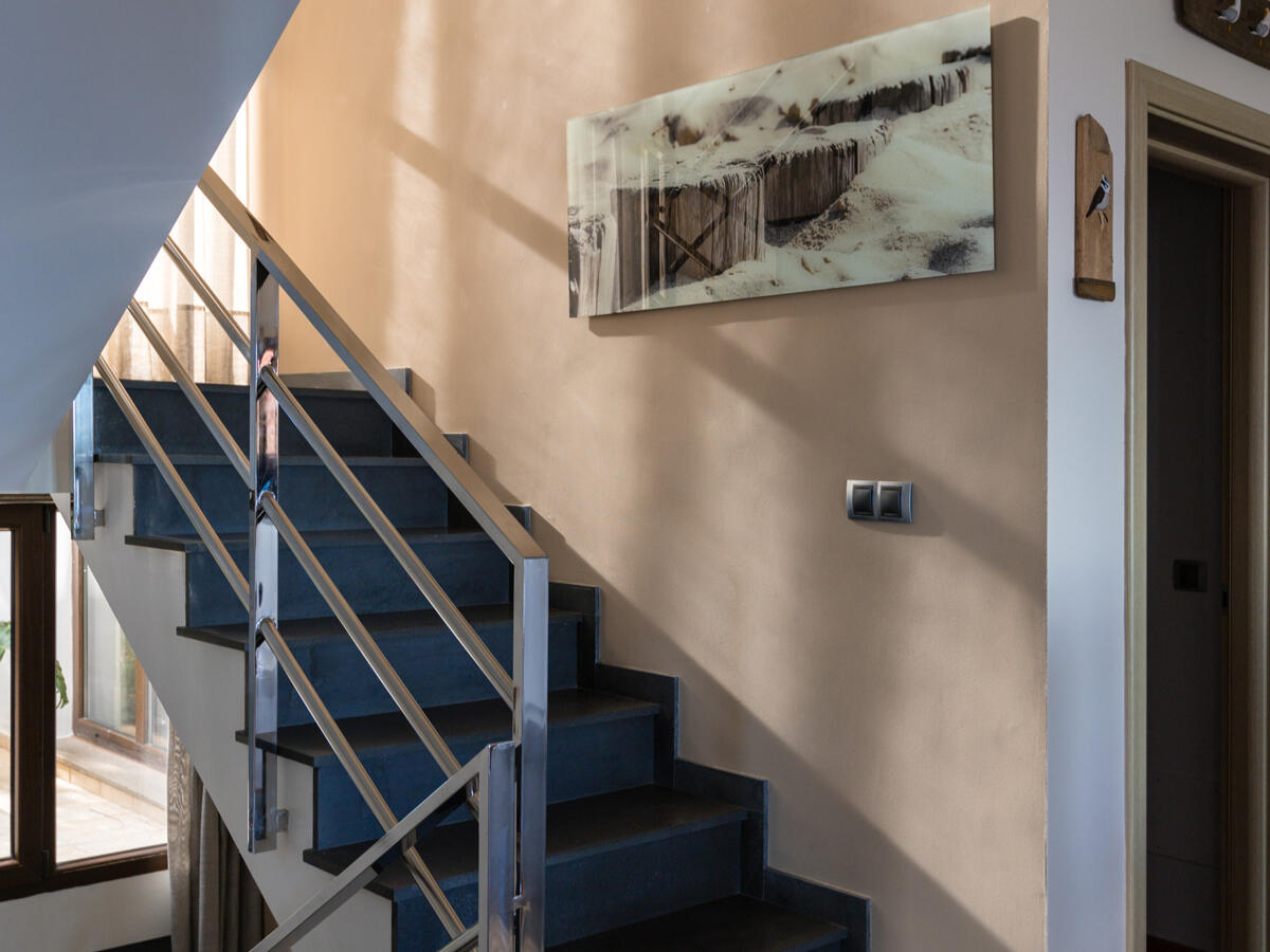 Die Villa ist in sehr gutem Zustand und präsentiert sich nun in einem zeitgemäßen Stil. Es wurden hochwertige Materialien verwendet, wobei auf Details und Oberflächen geachtet wurde. Sie hat ein offenes Design und große Fenster, die viel Tageslicht hereinlassen und eine warme und angenehme Atmosphäre auf beiden Etagen schaffen.