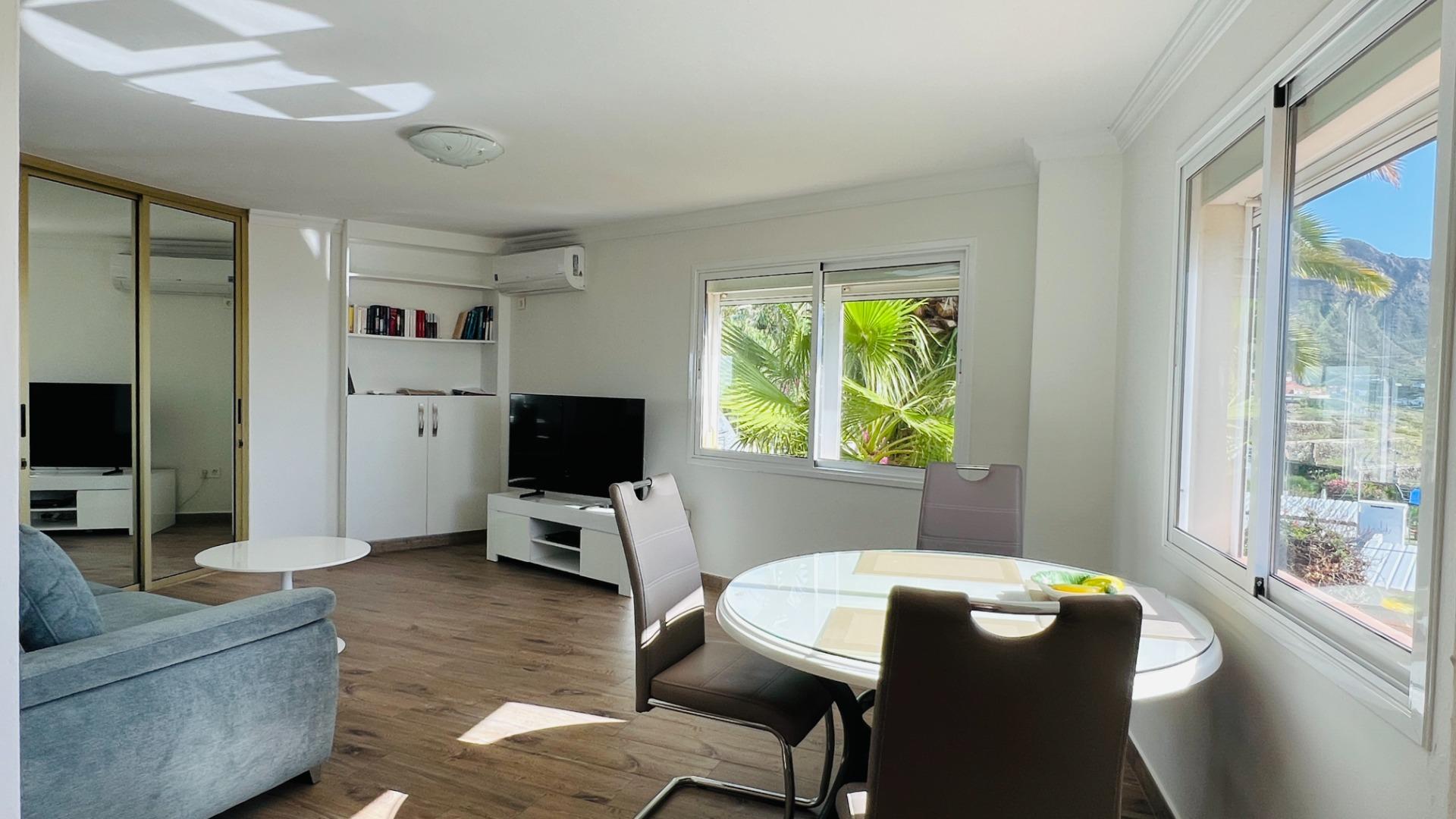 The exterior is a true haven of well-being: a private swimming pool, outdoor shower and a meticulously manicured garden with palm trees, creating a tropical setting full of peace and maximum privacy. The generous and perfectly utilised outdoor space is the ideal place to experience the Mediterranean luxury that defines Tenerife.