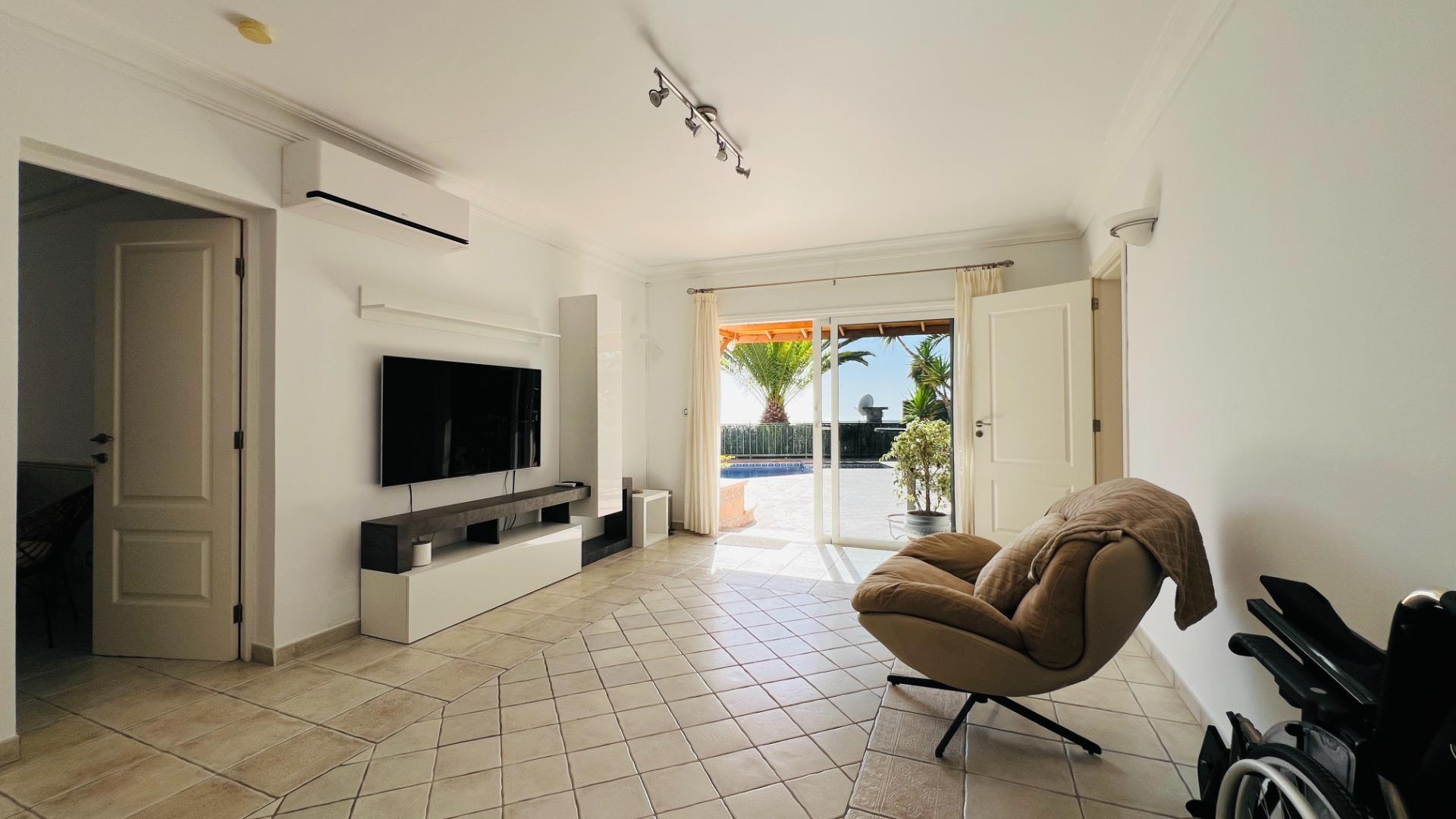 The villa also incorporates a second independent 80 m² house, equipped with 1 bedroom, bathroom, kitchen, living room and private terrace, offering extra comfort and versatility.