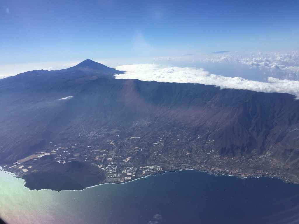Hay vuelos regulares desde Madrid (2,5horas) o Barcelona (3,5horas) al Aeropuerto del Norte “Los Rodeos” o el Aeropuerto international del Sur “Reina Sofia”, igual que numerosos vuelos chárter desde Italia, Gran Bretaña o Alemania.