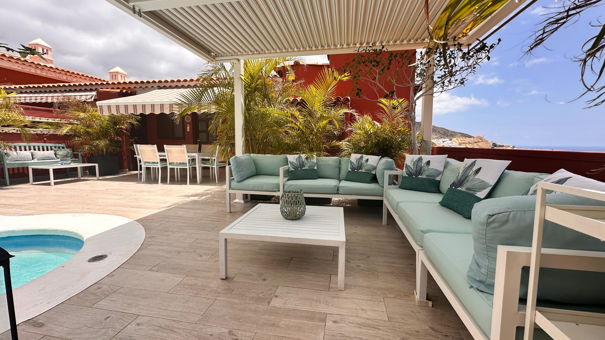 Discover this exclusive corner duplex located in one of the most sought-after areas of southern Tenerife: Madroñal de Fañabé. With stunning panoramic views of the sea and mountains from virtually every corner of the property, this home offers privacy, spaciousness, and a variety of outdoor spaces.