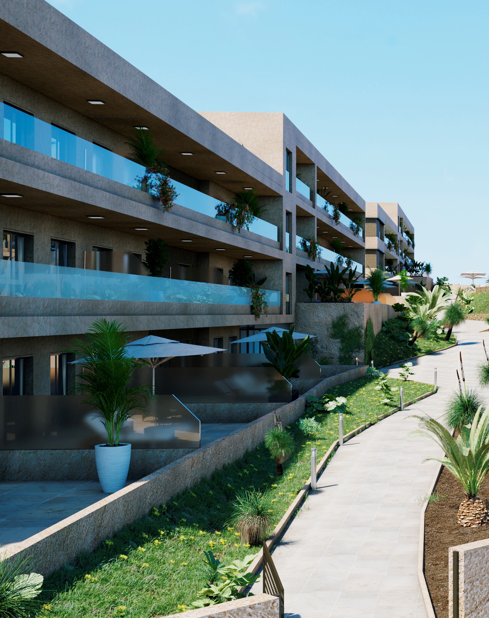 Die Wohnanlage umfasst insgesamt 84 Wohnungen, die in zwei Blöcken in einer privaten Wohnanlage mit weitläufigen Gartenanlagen, zwei Gemeinschaftspools und einem Padel-Tennisplatz angeordnet sind. Diese Wohnanlage ist zweifellos eine der exklusivsten in der gesamten Umgebung.