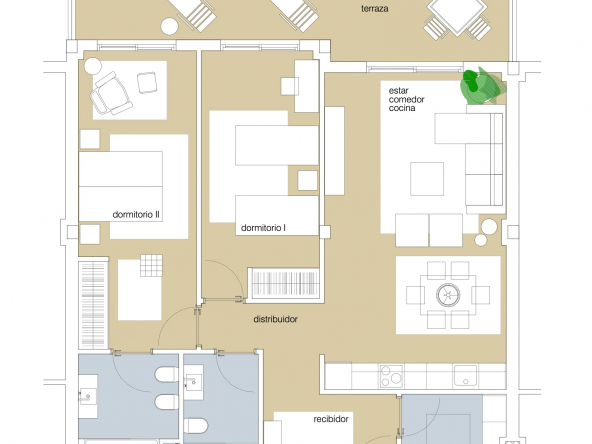 Das Penthouse verfügt über 2 Schlafzimmer und 2 Badezimmer, eines davon en-suite, ein geräumiges und helles Wohn-Esszimmer sowie eine hochwertig ausgestattete Küche. Auf der Terrasse können Sie sich bei den angenehmen Temperaturen der Region entspannen. Von der Wohnung aus haben Sie einen Blick auf den Montaña Roja und den Teide.