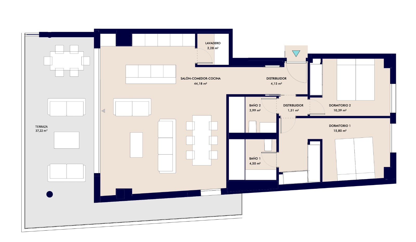 • Dormitorios: 2