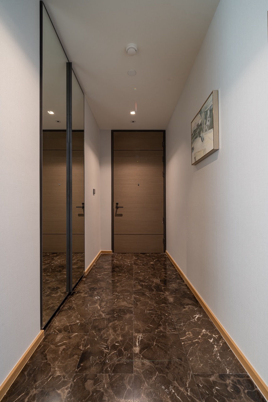 Residents and guests are majestically welcomed into 28 Chidlom by a spacious, tastefully appointed semi-outdoor lobby that soars seven metres overhead, for an open, airy ambiance that complements