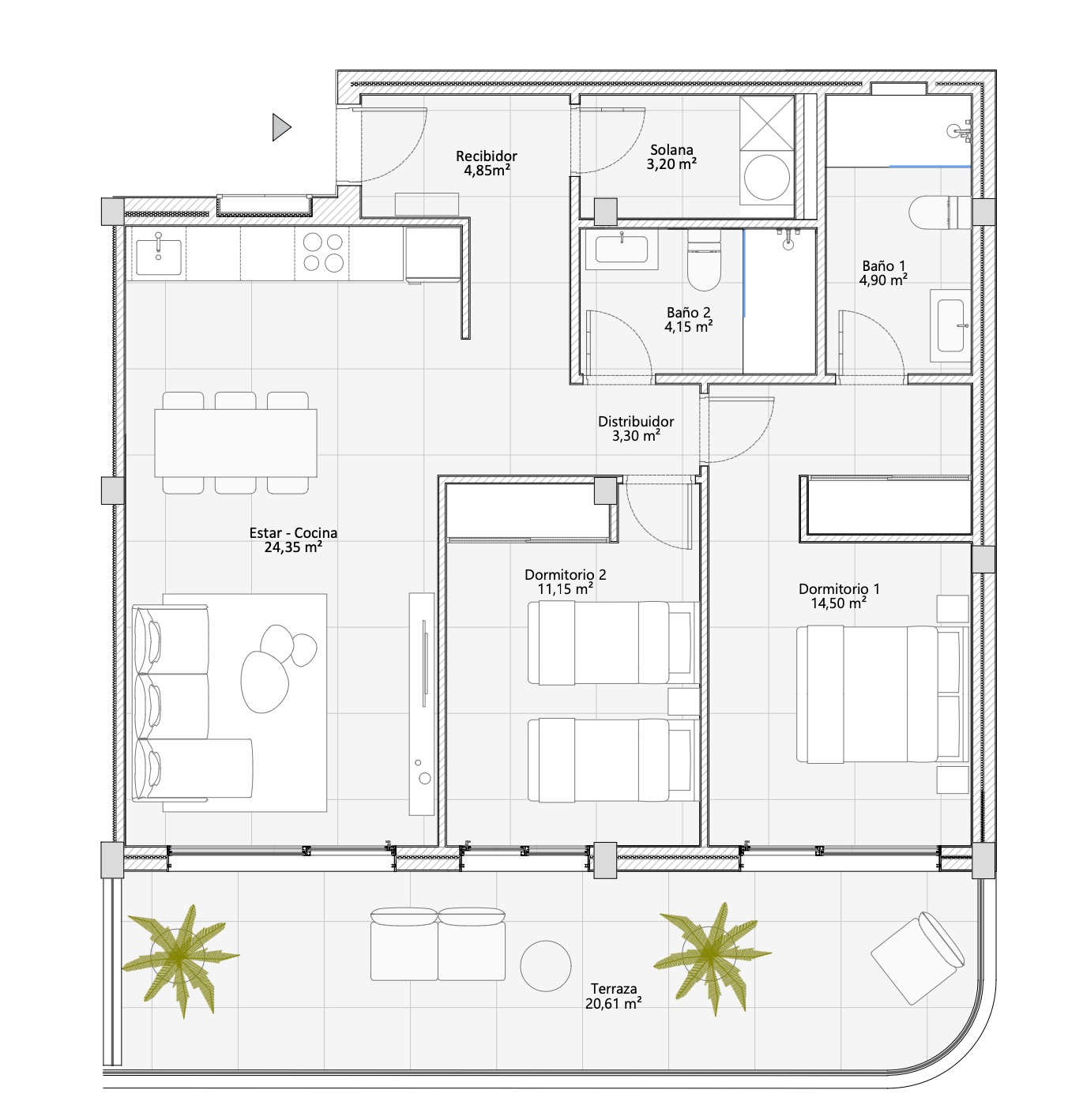 * Apartment, 2nd floor, 2 bedrooms, 2 bathrooms, 106 m² built, 21 m² terrace, €580,000