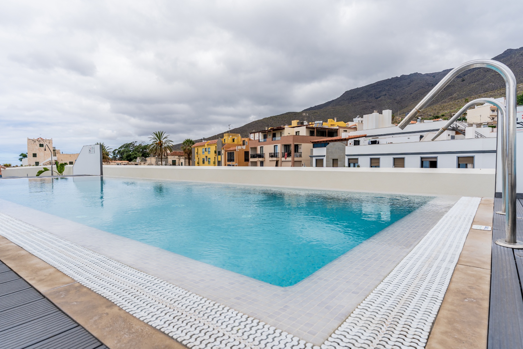 The residential complex offers a communal rooftop with a heated pool, where you can enjoy spectacular views of the sea and mountains – the perfect place to relax, socialize, or simply admire the scenery.