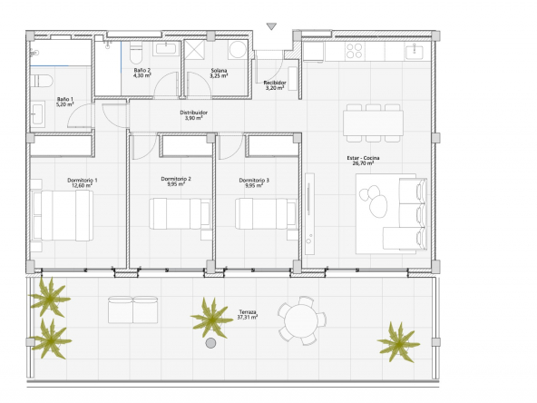 * Apartment, 2nd floor, 2 bedrooms, 2 bathrooms, 106 m² built, 21 m² terrace, €580,000