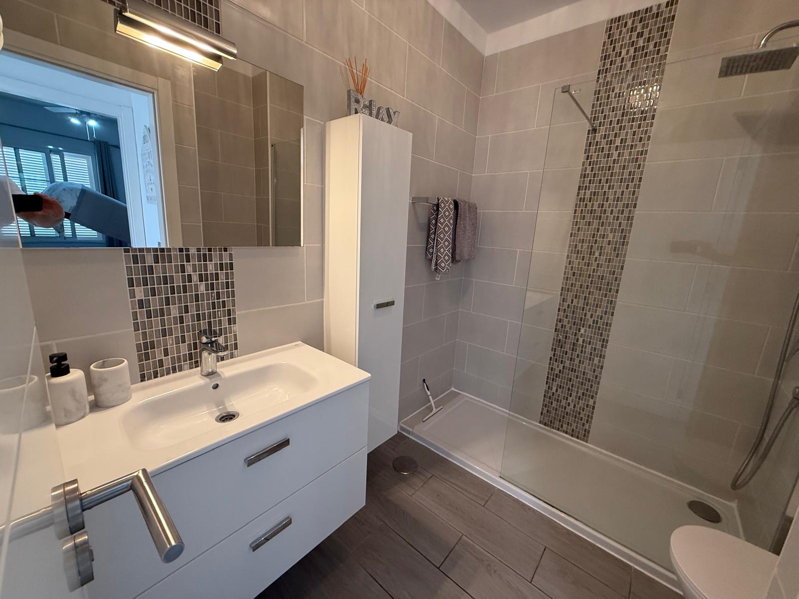 Outside, the balcony is ideal for your morning coffee, while the private solarium will allow you to sunbathe, work from home with maritime inspiration, or enjoy sunset dinners with family and friends.