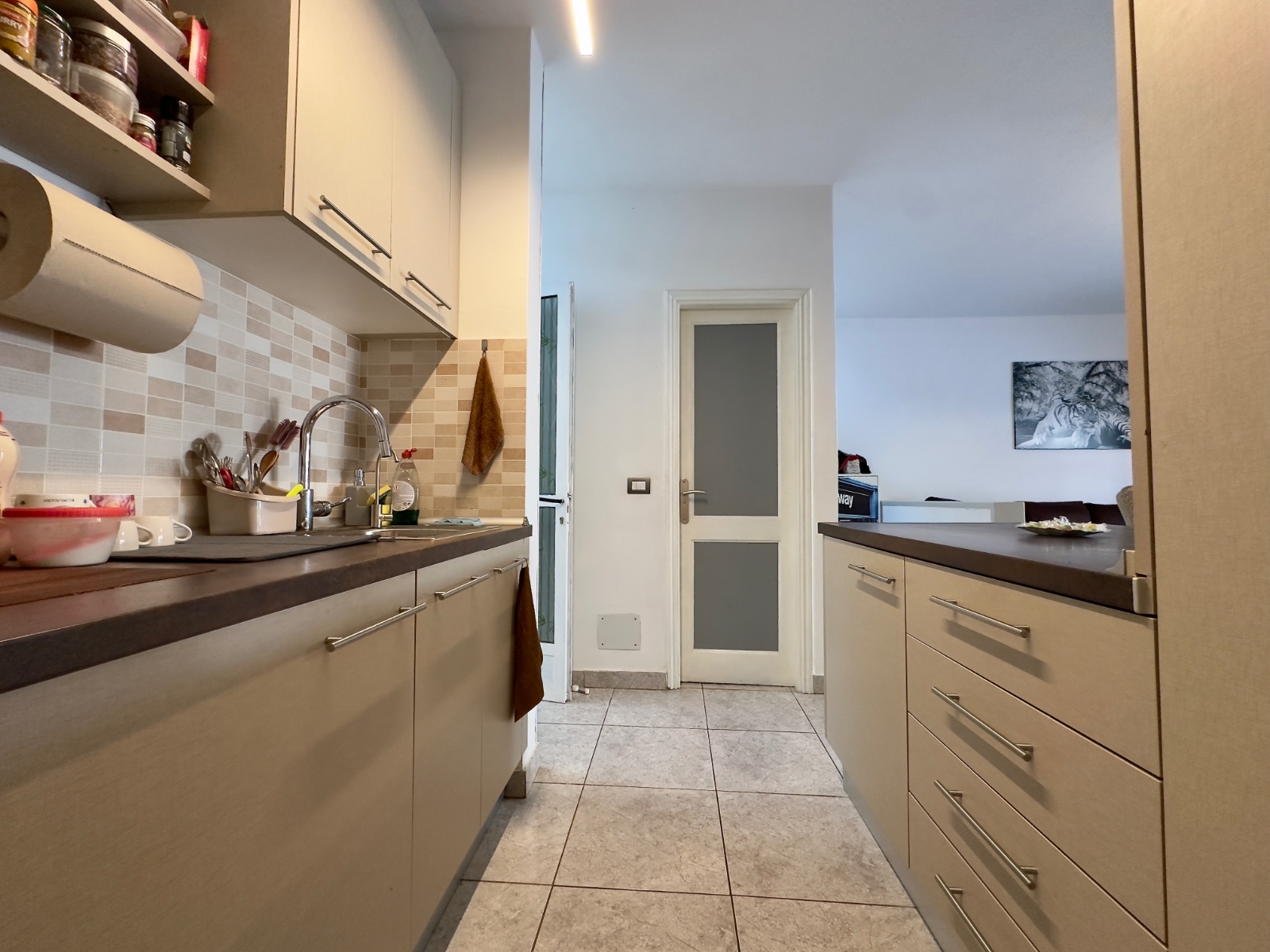 A private garage space is included, adding comfort and exclusivity. The residential complex also boasts a large communal swimming pool that has been recently renovated, ideal for relaxation.
